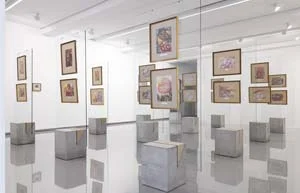 Believe not every spirit, but try the spirits, 2015, exhibition view with Georgiana Houghton watercolours, Monash University Museum of Art, Melbourne; image courtesy the Victorian Spiritualists’ Union; photo: Zan Wimberley