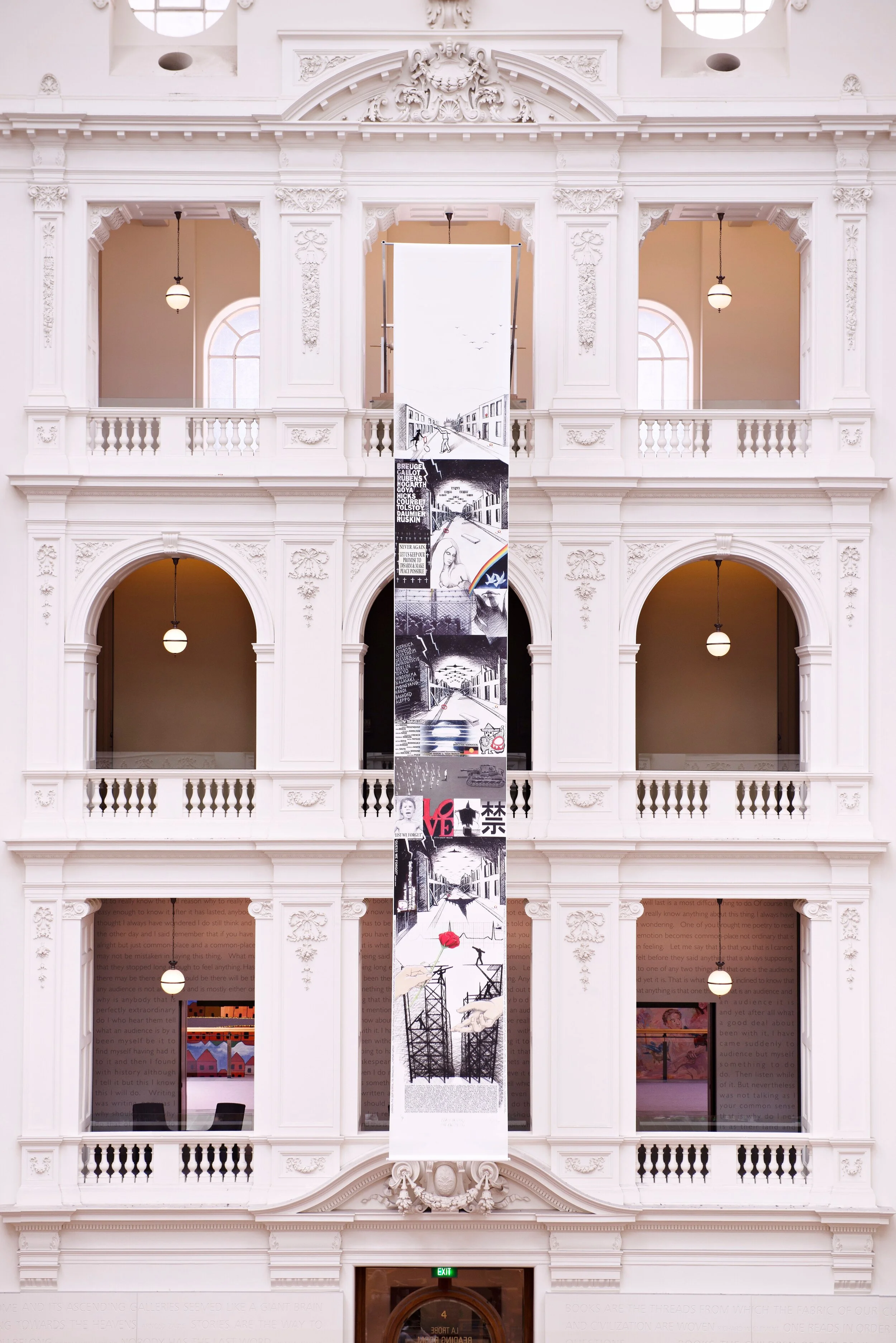 William Kelly, Peace or War: The Big Picture, 2016, installation view, La Trobe Reading Room, State Library Victoria, Melbourne, 2016; limited edition print on archival paper, 1260 x 160cm; courtesy the artist